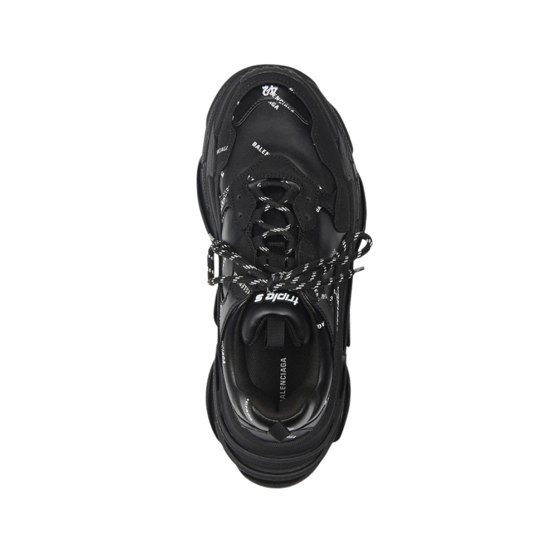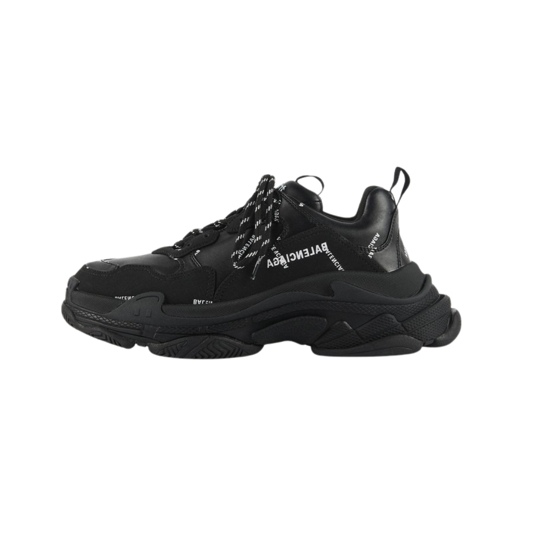 Las Balenciaga Triple S Negras con logo “BALENCIAGA” representan la versión más potente y versátil de la icónica silueta chunky de la firma. El negro total refuerza la presencia del diseño, mientras que el bordado lateral con el nombre de la marca aporta identidad clara y carácter luxury.