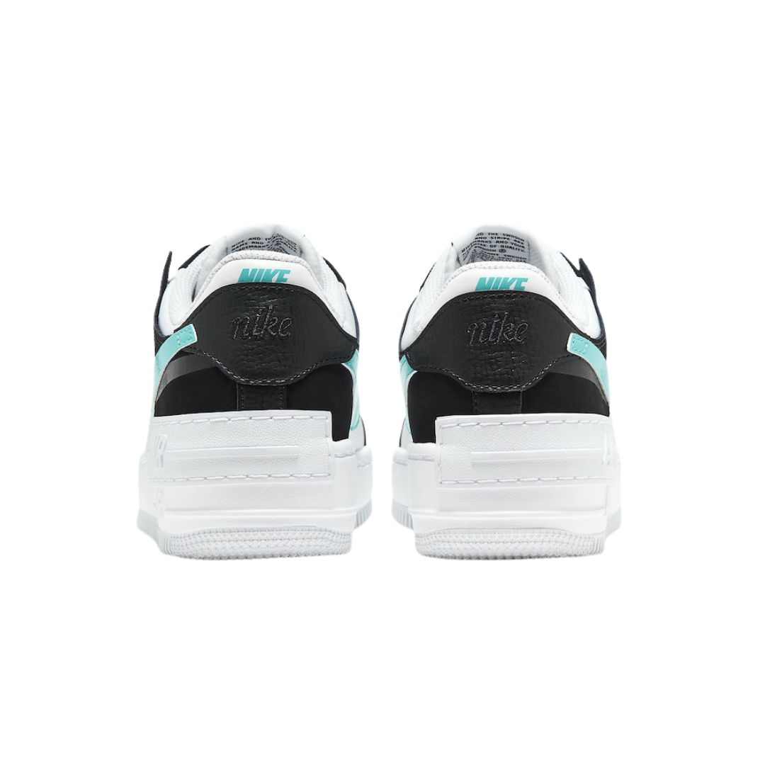 Las Nike Air Force 1 Shadow Black Teal combinan negro total con detalles en verde azulado y diseño doble capa. Más volumen, más actitud, misma comodidad legendaria.