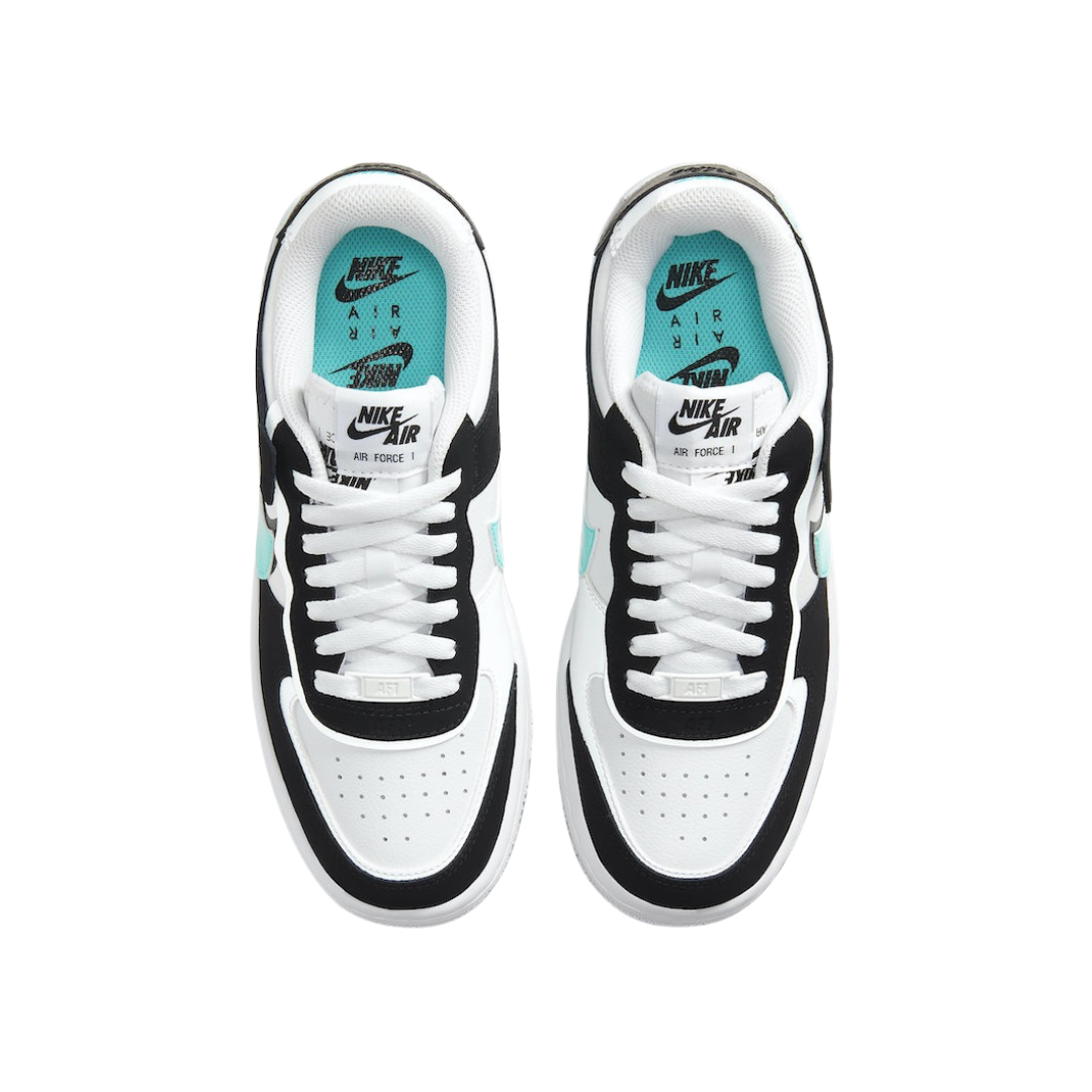 Las Nike Air Force 1 Shadow Black Teal reinterpretan la silueta clásica AF1 con un diseño más atrevido y moderno. El contraste entre negro profundo y detalles en teal (verde azulado) crea un equilibrio perfecto entre sobriedad y personalidad.
